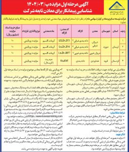 آگهی مرحله اول مزایده پ/۱۴۰۳/۱۲ شناسایی پیمانکار برای معادن تابعه شرکت ادامه مطلب » اردیبهشت ۱۵, ۱۴۰۴